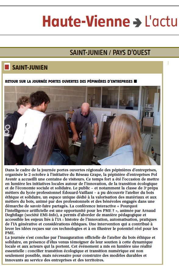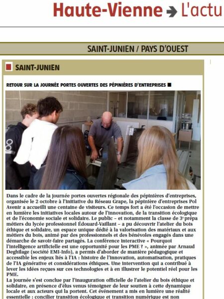 Merci à Le Populaire du Centre pour son article du 20 octobre retraçant le déroulement de notre Journée Portes Ouvertes du 2 octobre dernier.