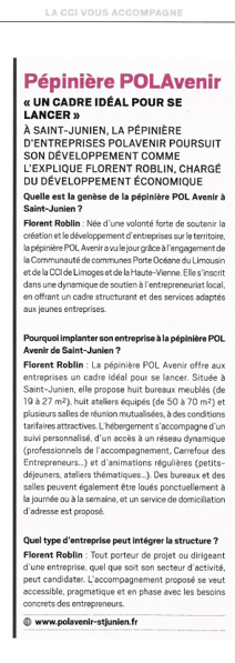 🙏Nous remercions chaleureusement la CCI DE LIMOGES ET DE LA HAUTE-VIENNE pour son article consacré à notre pépinière d’entreprises Pol Avenir dans son magazine Actions.